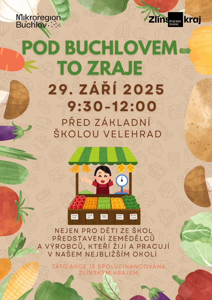 V pondělí 29. 9. od 9:30 do 12 hodin před Základní školou Velehrad představení práce zemědělců a výrobců, kteří žijí a pracují v krajině Velehradu.
