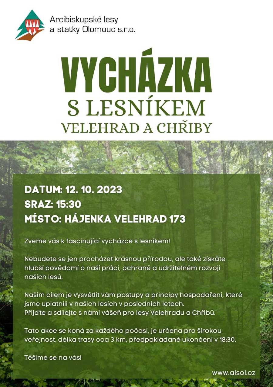 Ve čtvrtek 12. října v 15:30 se bude vycházet od hájenky za Velehradem č.p. 173 (směrem na Salaš, skoro naproti kempu) na Vycházku s velehradským lesníkem.