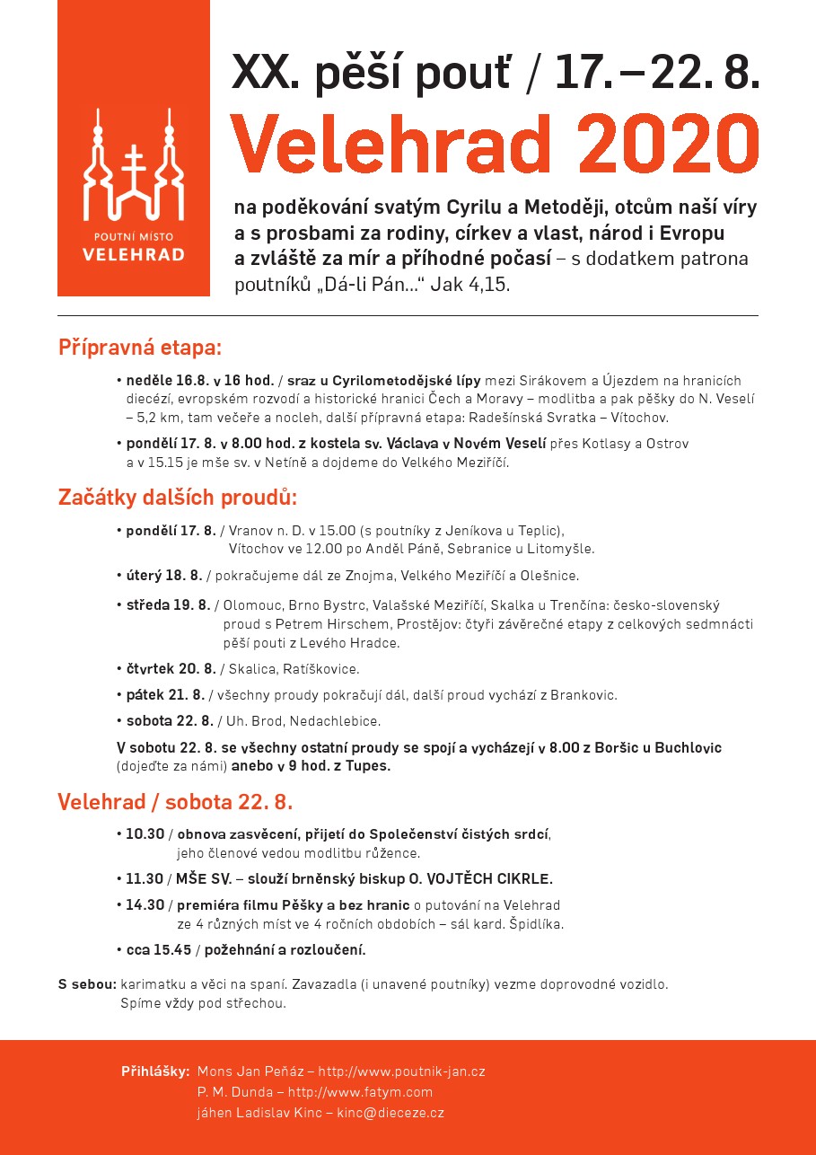 Úvod > Život v obci > Kulturní kalendář, události a akce > Aktuality > XX.pěší pouť na Velehrad 2020